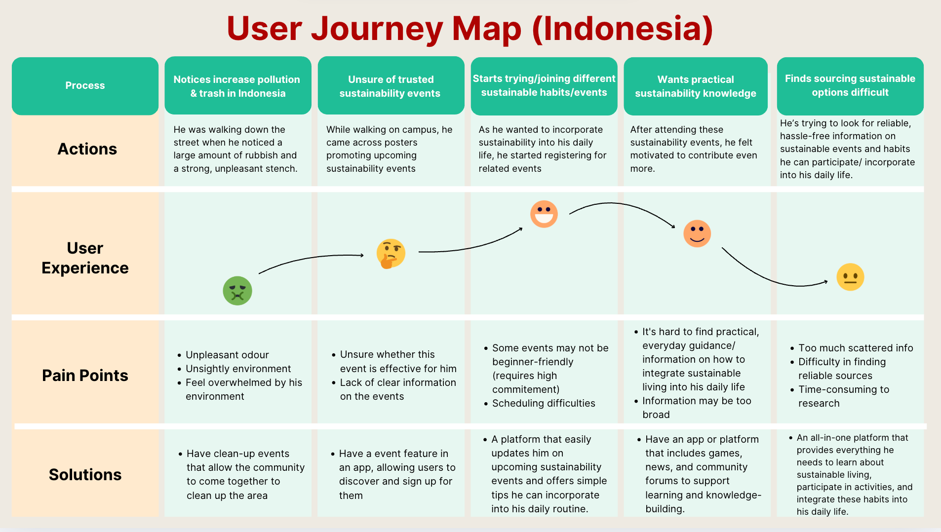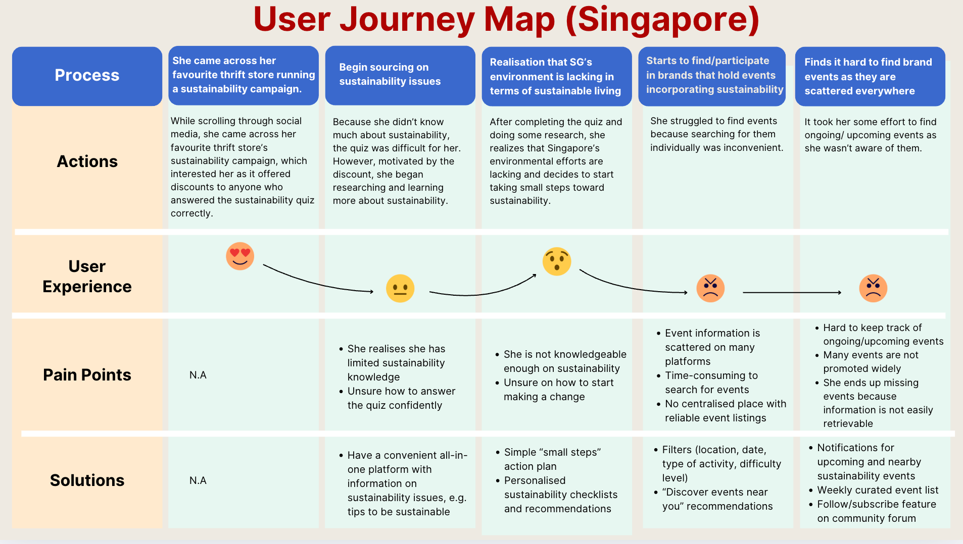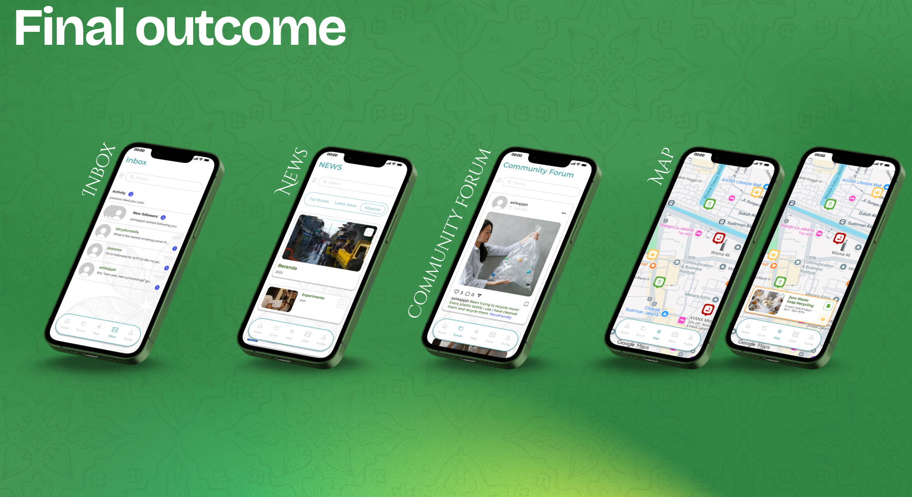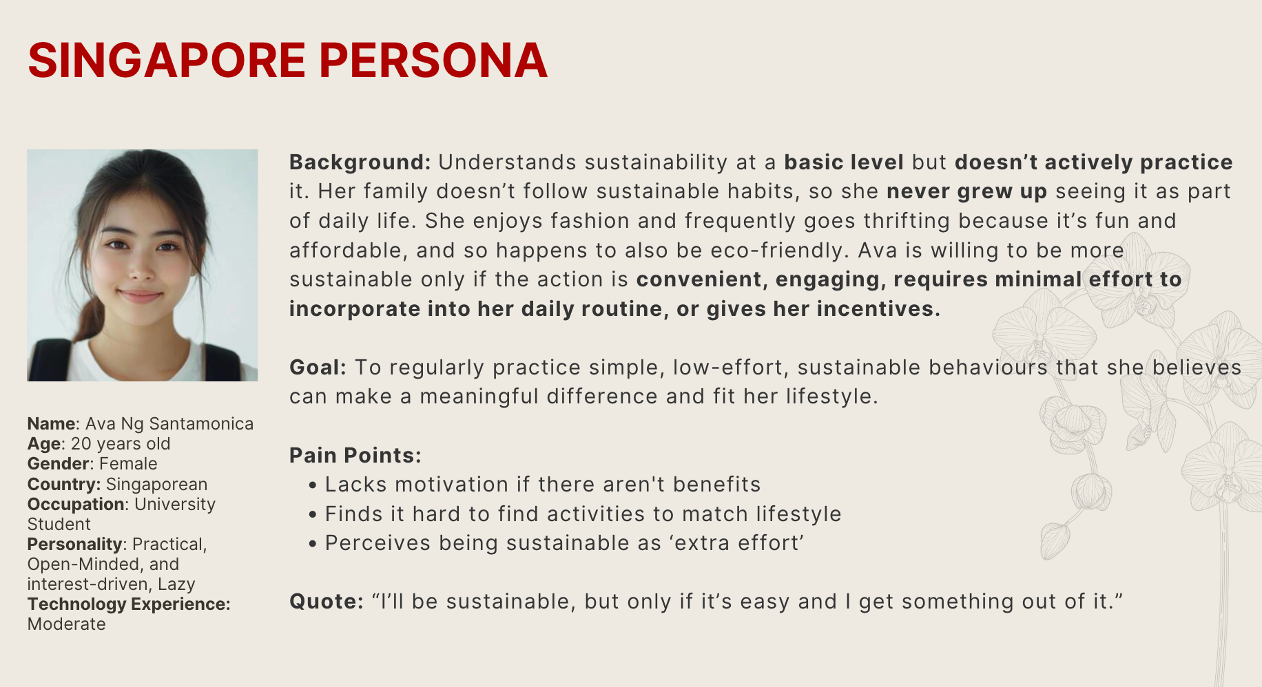 Our creative solution consists of a sustainability-focused mobile application that integrates localised real-life case studies, country-specific content, interactive activities, and community-driven engagement into one intuitive platform to educate, connect, and empower users to drive meaningful sustainability change.