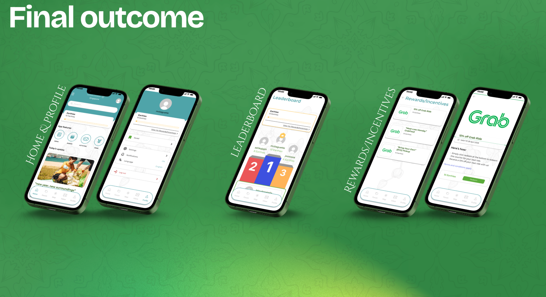 Above are prototype of Home, Profile, Leaderboard and Rewards/Incentives page.